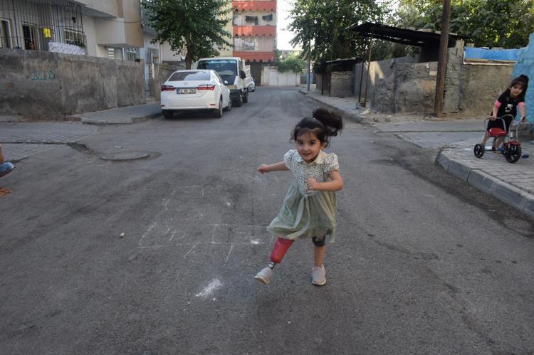 Çok şükür birlikte gidip, geleceğiz. Biz dışarı çıkarken sürekli bebek arabasını kullanmak zorunda kalıyorduk ama protezine kavuştuktan sonra rahat şekilde el ele tutuşup markete, parka gidebiliyoruz. Şimdi okula başlayacak, rahatlıkla gidebileceğiz inşallah. Eğer protezler yapılmasaydı her iki çocuğum da sürekli emekleyerek yürüyeceklerdi. Kızımın koşarak yanıma gelip beni öpmesi, bana sarılması, o yürüyüşünü görmek çok mutlu ediyor bizi.