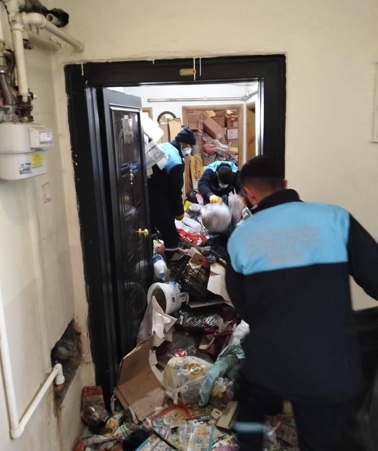 Belediye ekipleri 3 gün boyunca süren çöp boşaltma çalışmasının sona ermesinin ardından daireyi ilaçlayarak M.A.’nın yakınlarına teslim edecek.