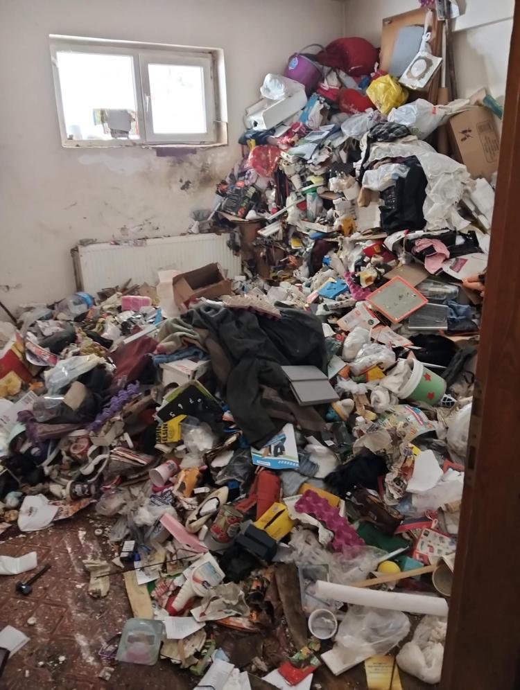 Kokudan rahatsız olan komşuların şikayeti üzerine eve giden ekipler, arkası çöp yığınlarıyla dolu olan kapıya açamayınca M.A’yı pencereden dışarıya çıkardı. Sağlık ekipleri tarafından Erzurum Şehir Hastanesi’ne götürülen M.A. psikiyatri servisinde tedaviye alındı.