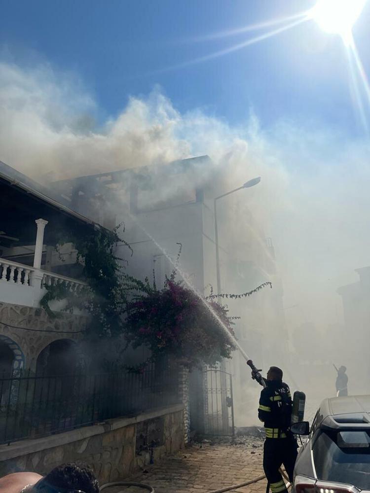 Muğla'nın Bodrum ilçesinde, dün 2 katlı binanın çatısındaki yangında, oturduğu 2'nci kattaki dairenin penceresinden atlayan ve vücudunda yanık ile kırıklar oluşan Muhterem Dokgözoğlu (65), yaşamını yitirdi.