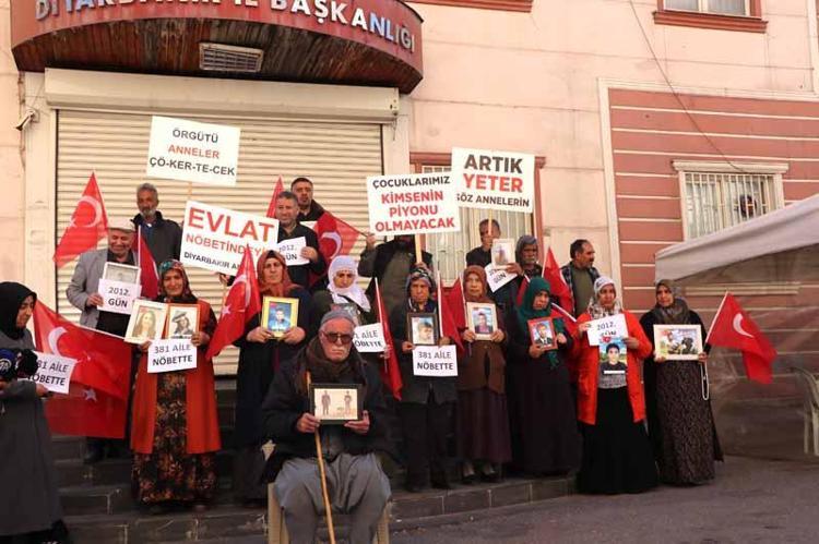 Diyarbakır'da eski HDP İl Başkanlığı önünde evlat nöbeti tutan aile sayısı, 7 ay önce terör örgütü PKK tarafından kaçırılan oğlu Abdullah (24) için katılan Remezan Kazaylek ile 381'e çıktı.