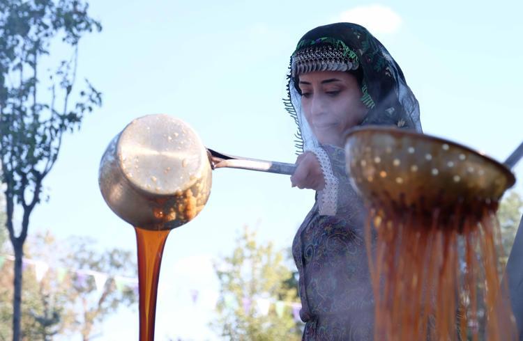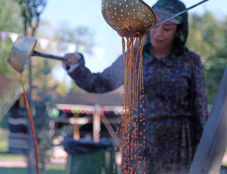 Açılış töreninde bağlardan elde edilen üzümlerle eski usullere uygun odun ateşinde pekmez kaynatıldı.