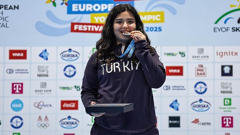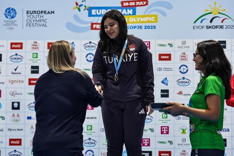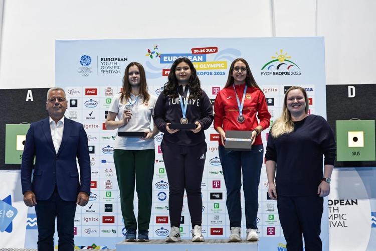 Kuzey Makedonya’nın Üsküp kentinde yapılan 2025 Avrupa Gençlik Olimpik Yaz Festivali’ne (EYOF 2025) Atıcılık dalında tek kadın sporcu olarak Türkiye’yi temsil eden Ezginur Türkmen altın madalya kazandı.
