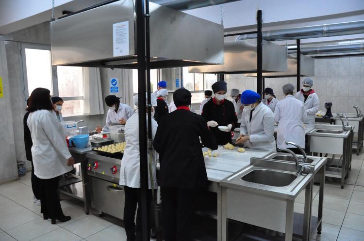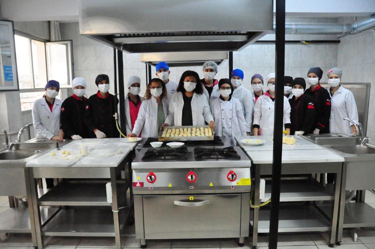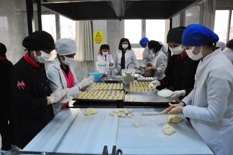 Okulun 12'nci sınıf öğrencilerinden Kezban Esenyel de "Okulumda stajyer olarak yemekhanede görev almaktayım. İleride kadın girişimci olarak bir aşçı veya şef olma yolunda ilerliyorum" diye konuştu.
