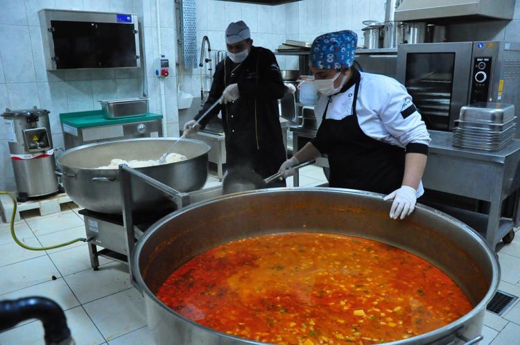 Burada günlük 1200 öğrenciye yemek hazırlıyoruz, ayrıca 250 öğrenciye kahvaltı hazırlıyoruz. Hazırlanan yemek ve kahvaltılıklar, taşımalı eğitim gören ilkokul öğrencilerine ve anaokulu öğrencilerine yetişiyor.