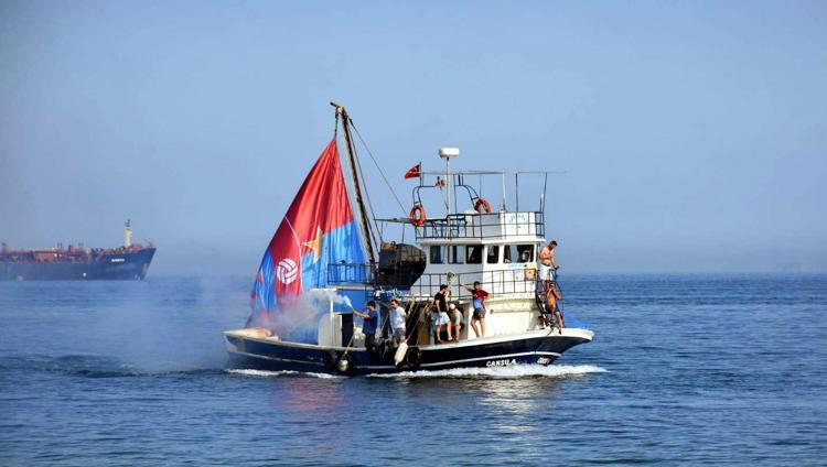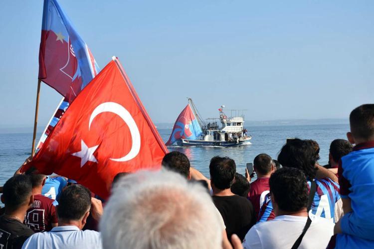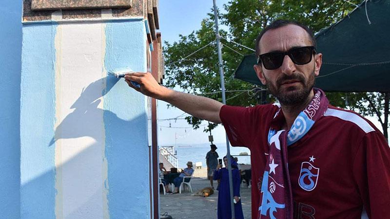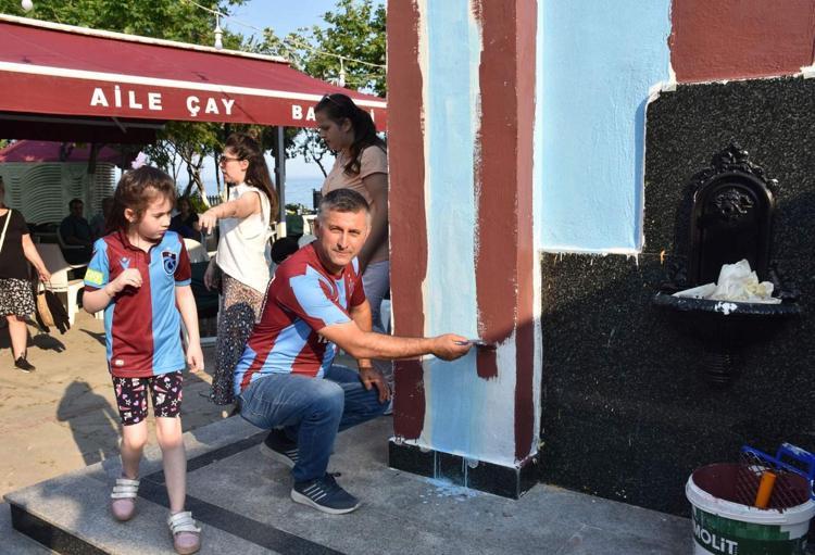 Çeşmenin boyanmasından önce Trabzonspor taraftarları teknelere denize açılıp, bordo-mavi bayraklarını açıp kutlama yaptı.