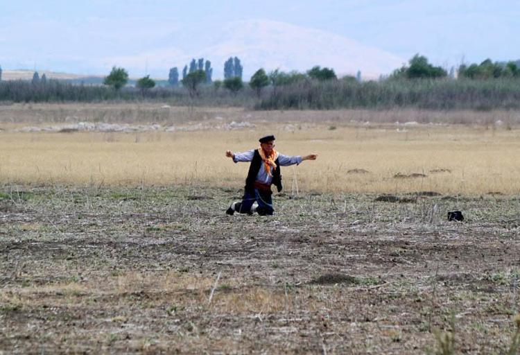 Farkındalık için kuruyan gölde halk oyunu oynadı