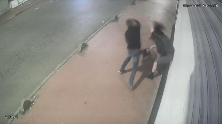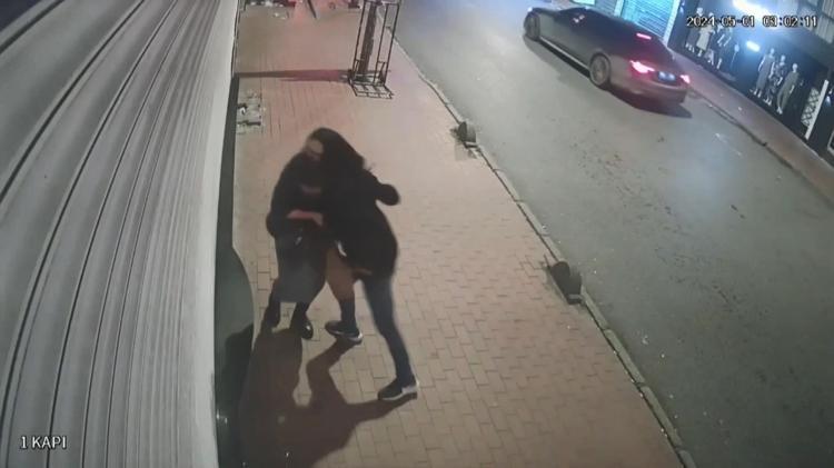 Güvenlik kamerasına yansıyan görüntülerde Haydarova'nın caddede yürüdüğü esnada şüpheli Karaaslan'ın yanına yaklaştığı ve talihsiz kadına yumruk ve kafa atarak gasbettiği görülüyor.