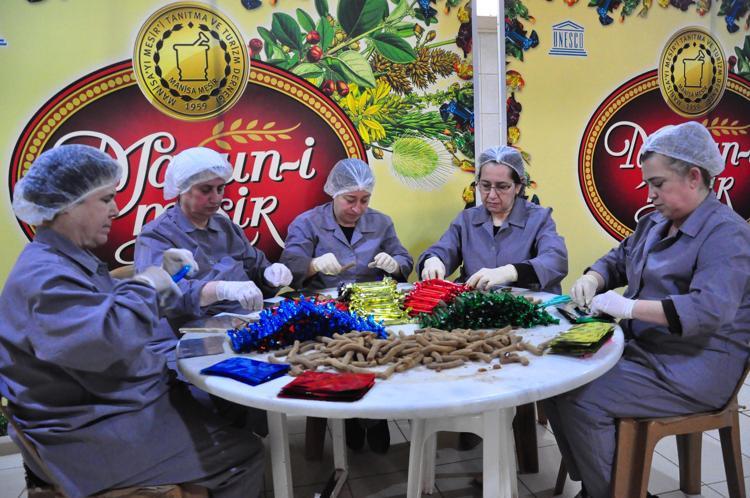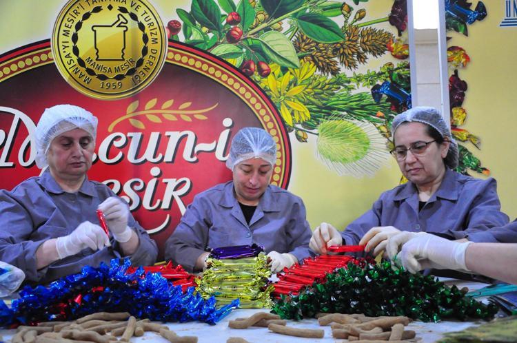 Mesir üretimi yapılan atölyedeki kadınların şefliğini yapan Fatma Hanım Suna, "Heyecanla, yoğun bir şekilde çalışıyoruz. Yıllardan beri geleneksel olarak ürettiğimiz macunumuzu saçılmak üzere üretmeye başladık. Mesir macunumuzu önce şeker ve suyunu kaynatıyoruz. 24 saat dinlendirmeye alıyoruz. Ertesi gün de üretime alıyoruz.