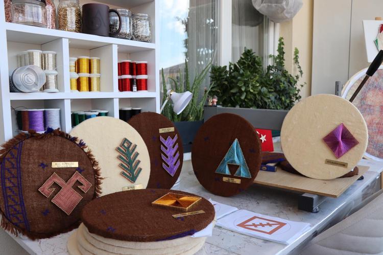 Oltu’da 4 yıl önce eşini kaybeden Elanur Akkuş, Oltu Kaymakamlığı Aile Destekleme Merkezi’nde açılan filografi kursuna katıldı. Kursun ardından evine küçük bir atölye kuran Elanur Akkuş, tablolar yapıp satmaya başladı. Erzurum’un yöresel kumaşı koyunyününden yapılan ehramla filografi sanatını buluşturan Akkuş’ın farklı tasarımları beğeni topladı. Akkuş, “Filografiyi daha önce biliyordum ama 3 yıl önce Aile Destekleme Merkezi'nde kursuna gittim. Sonrasında düşündüm ki, bu sanatı kendi kültürümüzle nasıl harmanlayabilirim? Annelerimizin örtünmek için kullandığı ehramla birleştirdim. Anadolu motiflerinden esinlendim. Eskiden insanlar söyleyemediklerini kilim desenlerine işlerdi; ben de bu anlatımı filografiyle birleştirdim. Ortaya çok özel tablolar çıktı” diye konuştu.