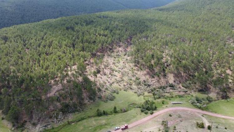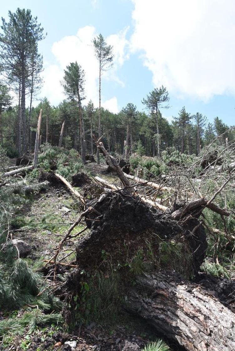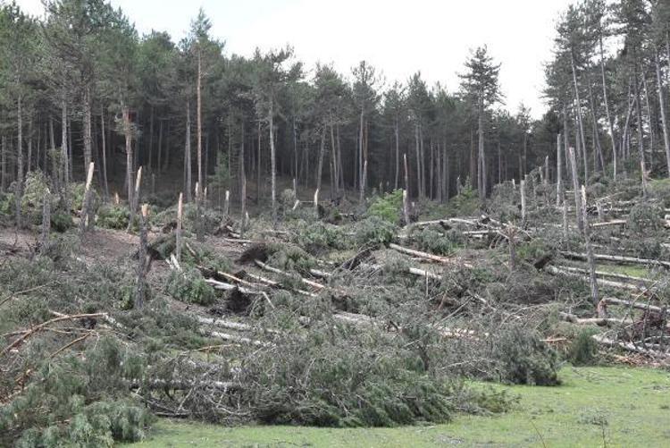 Fırtına, 2 hektarlık alanda 600 çam ağacını topraktan ayırmış