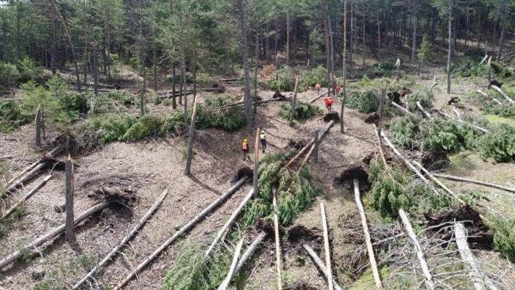Buradaki ağaçların fotoğraflarını çeken köylüler, durumu Orman Bölge Müdürlüğü’ne bildirdi. Kütahya Orman Bölge Müdürlüğü ekipleri de fırtınanın zarar verdiği 2 hektar alanda inceleme yaptı.