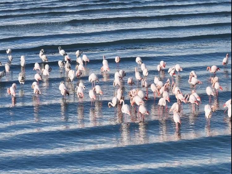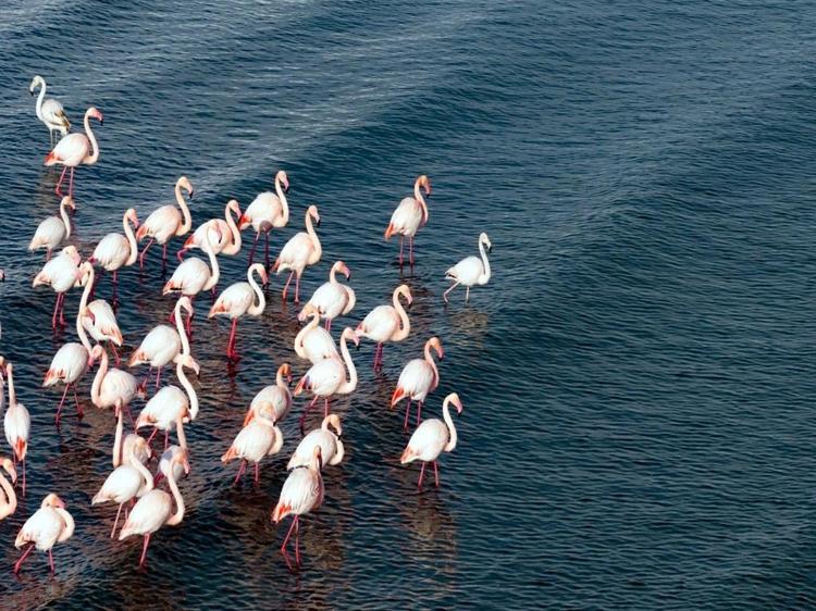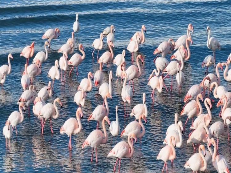 Flamingolar soğuk havaya rağmen göç etmedi