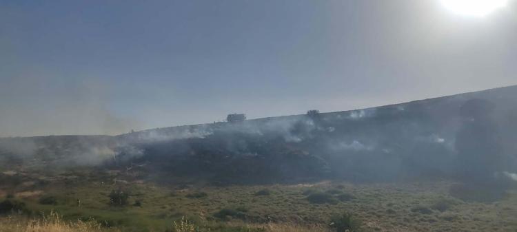 Foça'nın Yeni Bağarası Mahallesi’nin Yenifoça girişi mevkiindeki eski çöp depolama alanında, saat 17.00 sıralarında, bilinmeyen nedenle yangın çıktı.