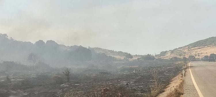 Foça'da eski çöp döküm alanında çıkan yangın kontrol altına alındı