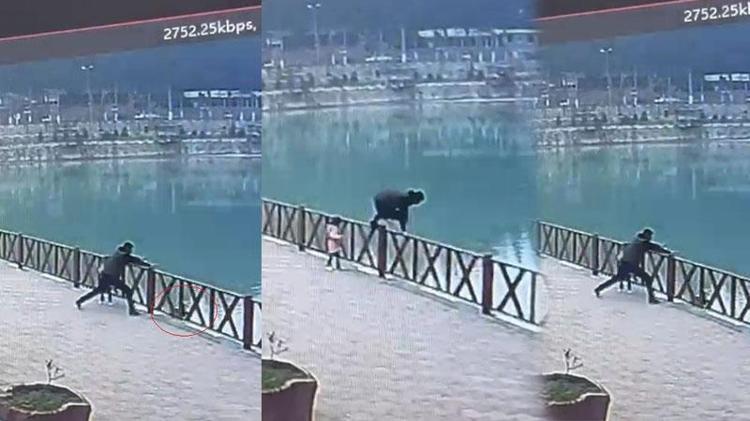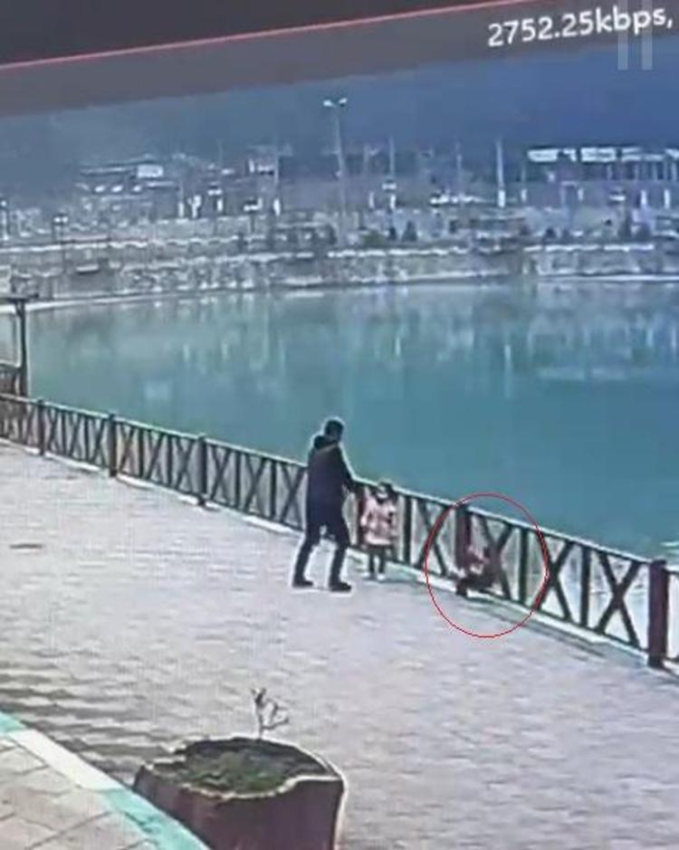 Hatay'ın Reyhanlı ilçesinde fotoğraf çekilirken göle düşen 3-4 yaşlarında kız çocuğunu, suya atlayan babası kurtardı. Yaşananlar iş yerinin güvenlik kamerasına yansıdı.