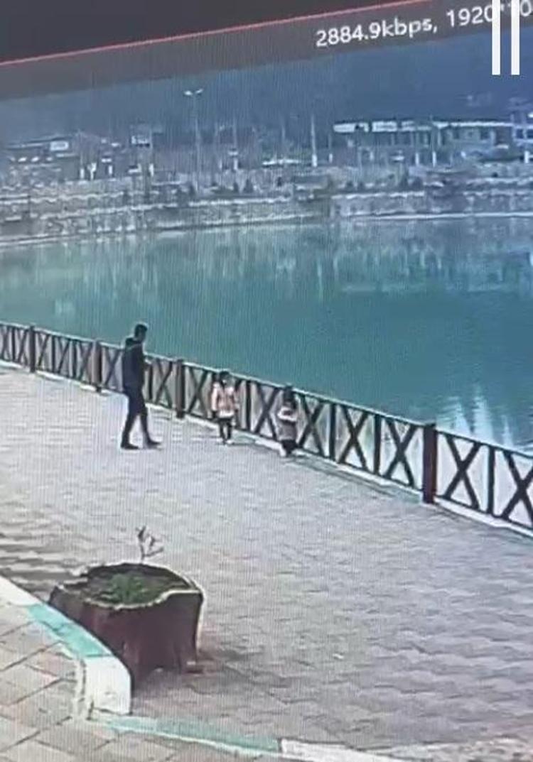 Fotoğraf çekilirken göle düşen küçük kızı babası kurtardı; o anlar kamerada