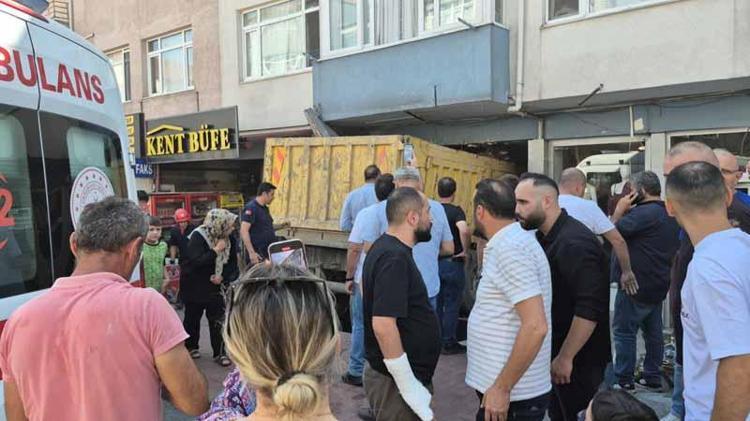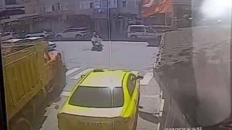 İş yerinin önünden geçen bir motosiklet sürücüsü ise hızla gelen hafriyat kamyonunun altında kalmaktan son anda kurtuldu. Güvenlik kameralarına yansıyan kazayla ilgili soruşturma başlatıldı.