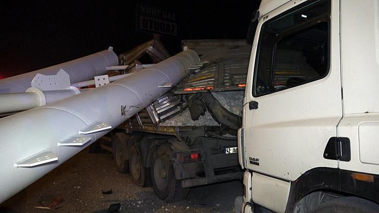 Düzce’de freni boşalan TIR, park halindeki 2 TIR’a çarparken, dorsesinde bulunan çelik konstrüksiyonlar yola devrildi. Kazada yaralanan olmazken, D-100 yolu İstanbul istikameti yaklaşık 1 saat ulaşıma kapandı.