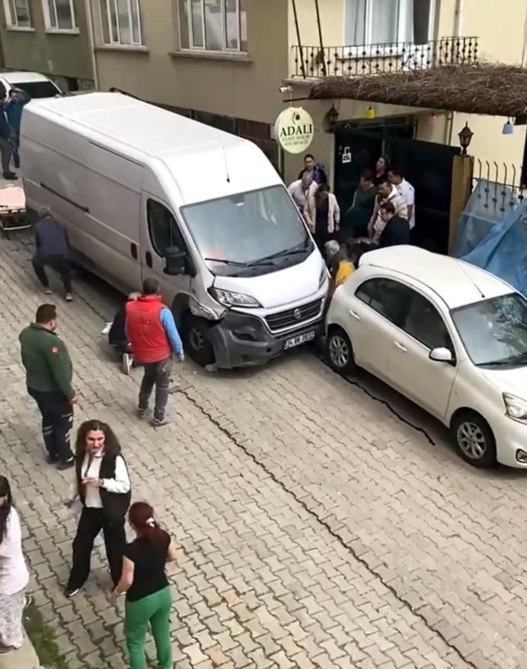 Freni boşaldığı öne sürülen minibüsün çarptığı 1’i çocuk, 2 kişi yaralandı