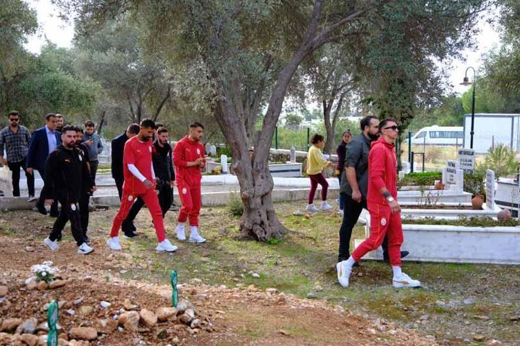 Galatasaraylı oyuncular, teknik heyet ve yönetim Yiğit’in mezarını ziyaret etti