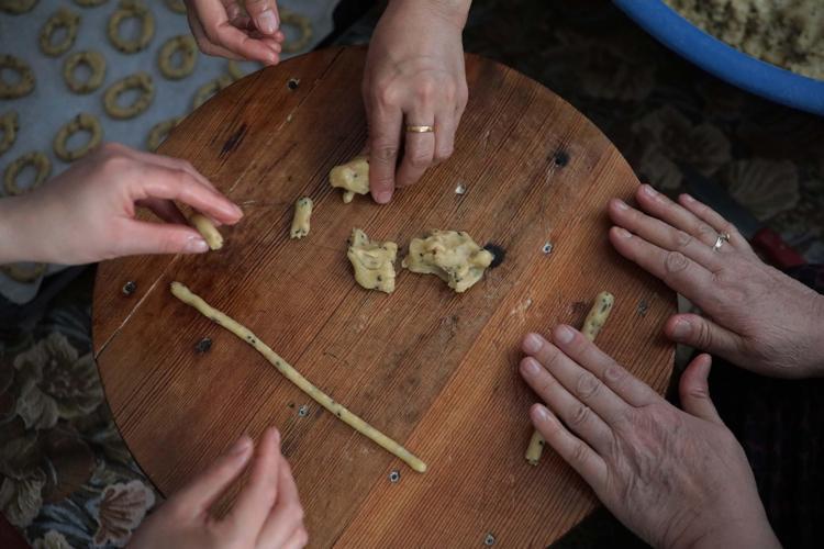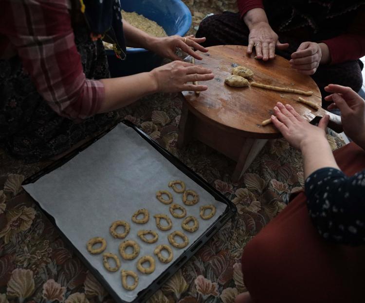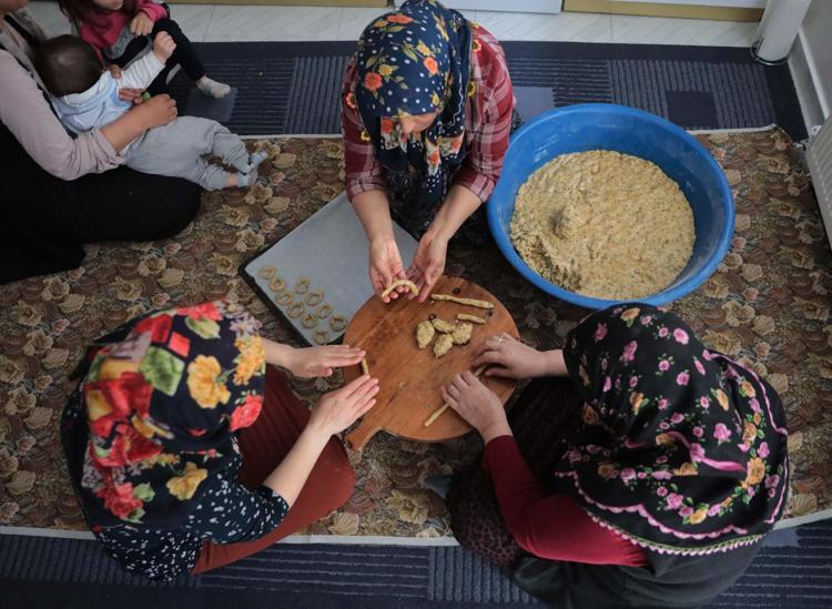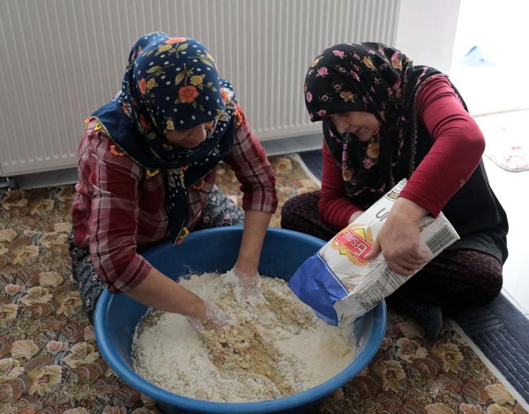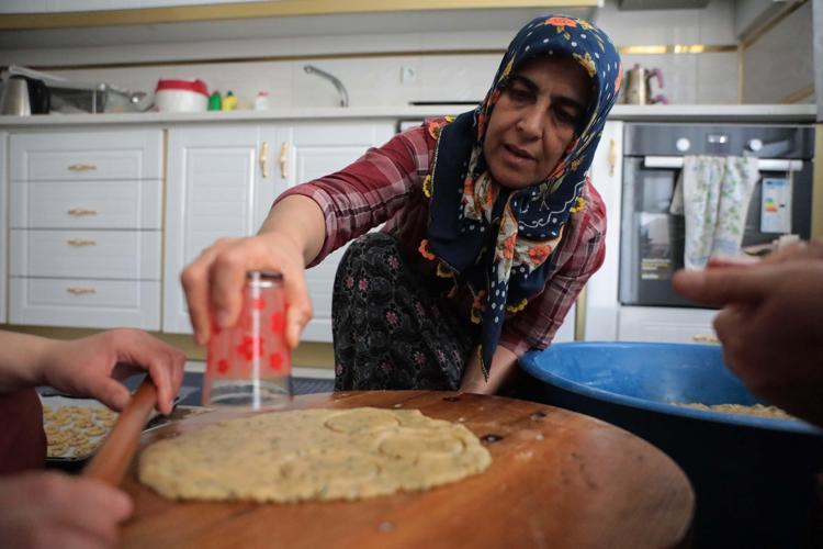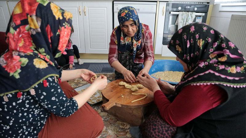 Gaziantep'te kadınlar, Ramazan Bayramı'na sayılı günler kala, coğrafi işaretli asırlık lezzet 'Köy Kahkesi'ni imece usulü hazırlıyor.