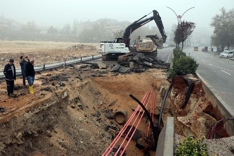 Gaziantep'te dün akşam etkili olan cadde ve sokakların göle döndüğü sağanakta 3 araç çöken istinat duvarının altında kaldı, kentin en işlek yollarından birisi olan Boğaziçi Bulvarı’nda ise yol çöktü.