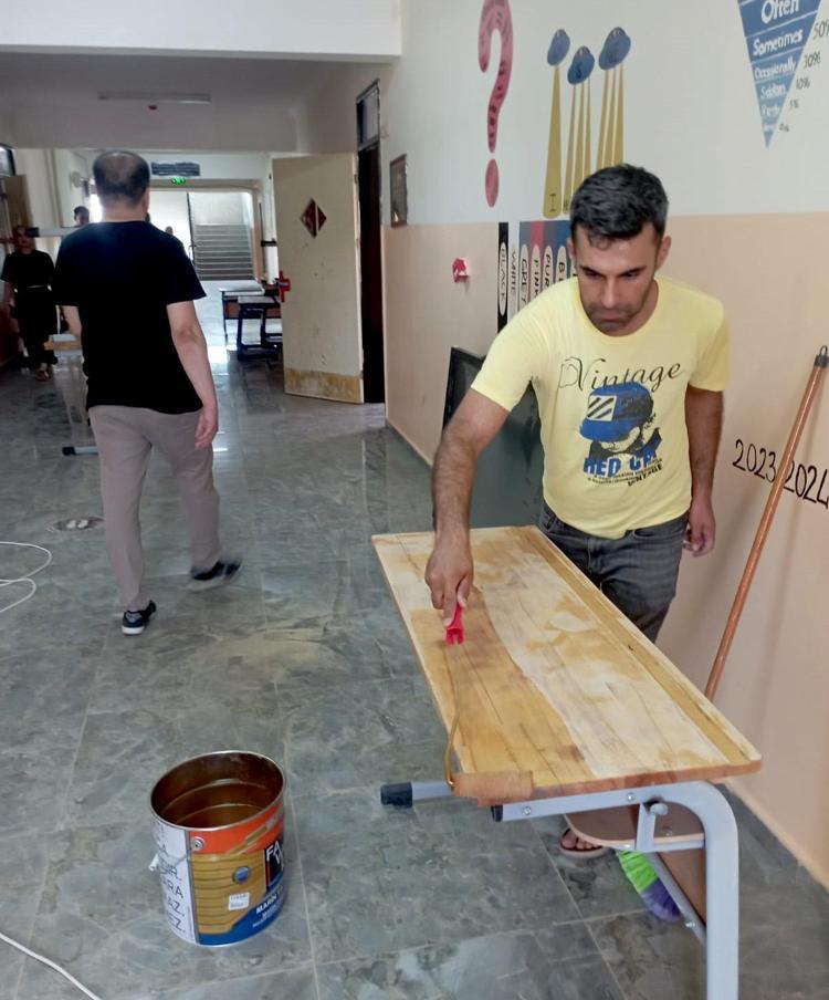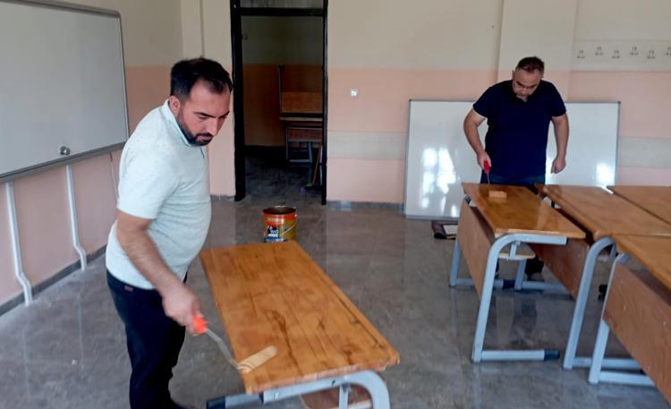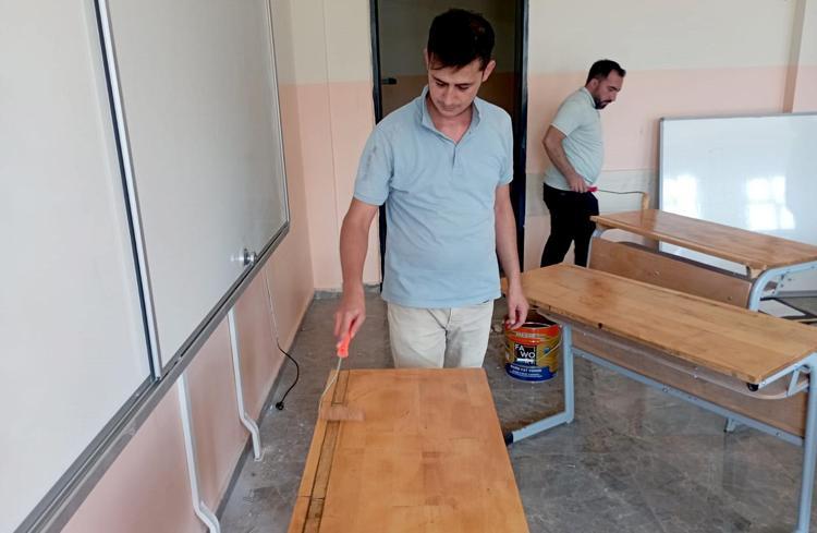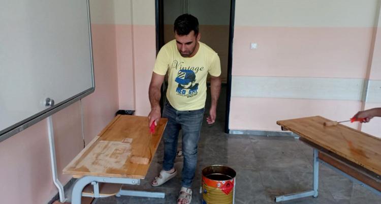 Gaziantep'te öğretmenler sıraları onarıp, sınıfları boyadı