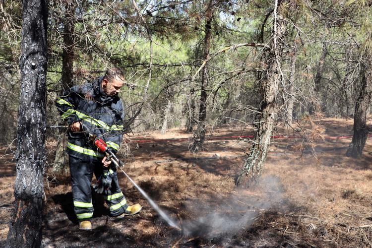 Soğutma çalışmalarının sürdüğü bölgede, 5 dönümü orman olmak üzere 10 dönüm alan zarar gördü.