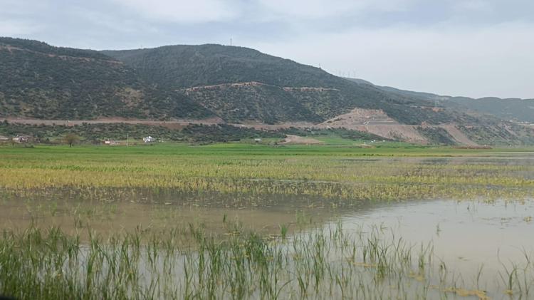 İlçeye bağlı Türkbahçe mevkisindeki 4 bin dekar buğday, arpa ve bezelye ekili alanın yaklaşık 2 bin dekarı son aylarda yağan yoğun yağışlar nedeniyle su altında kaldı. Bölge dronla görüntülenirken, Devlet Su İşleri tahliye ve kanal açma çalışması başlattı.