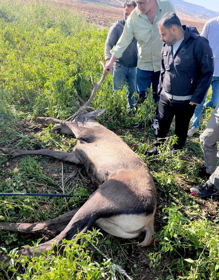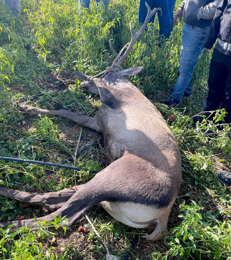 Çubuk Mahallesi kırsalında gece biber bahçesine giren ve sulama hortumlarına takılan koruma altındaki kızılgeyik, mahsur kaldı. Sabah saatlerinde geyiği gören çiftçi Mustafa Öztürk, durumu Tarım ve Orman Müdürlüğü ile Doğa Koruma ve Milli Parklar Şube Müdürlüğü’ne haber verdi.