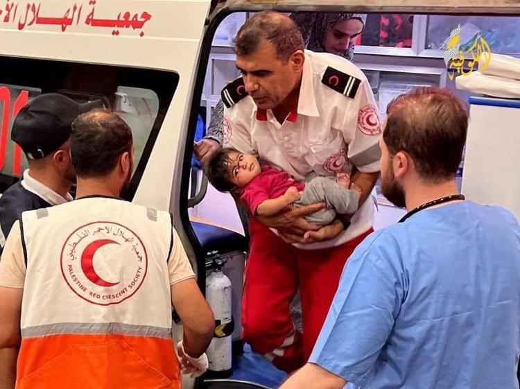 Filistin Kızılay’ı (PRCS) işgal altındaki Gazze’de İsrail hava saldırılarında yaralanan çocukların görsellerini paylaşarak "“Biz gitmiyoruz. İhtiyaç halinde kalıp hizmet edeceğiz” açıklamasını yaptı.