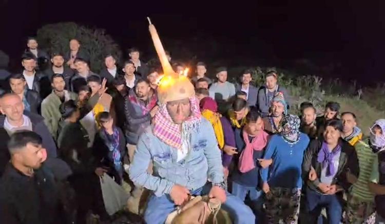 Damat, meşaleler yakılıp, Türk bayrağının altına takılan yazmalar eşliğinde mahalleye getirildi. Gençler, fesin üzerine mum dikerek yaktı ve damadı at sırtında mahallede gezdirdi. Mahalle sakinleri, at üzerindeki damadın etrafında toplanarak, türküler söyleyip, oyunlar oynadı. Atla yapılan turun ardından tavuk ve tatlı alma gelenekleri gerçekleştirildi. Damat tarafı gelin evinden tavuk, gelin tarafı ise damat evinden tatlı aldı. İki taraf, bu yiyecekleri mahallede belirlenen yüksek bir noktaya çıkararak, geleneksel töreni tamamladı.