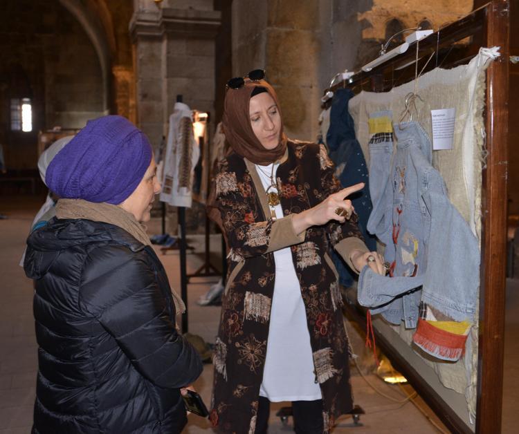 Atatürk Üniversitesi Güzel Sanatlar Fakültesi Tekstil ve Moda Tasarımı Bölümü Öğretim Üyesi Doç. Dr. Zeynep Kırkıncıoğlu, tekstil ve moda tasarımında sürdürülebilirlik kapsamında öğrencileriyle proje yaptıklarını söyledi. Atıl durumdaki, kullanılmayan kot ceketleri ile atıl durumdaki ehram kumaşlarını topladıklarını belirten Kırkıncıoğlu, "Hepsini yıkadık, tamir ettik. Yeniden kullanılabilecek hale getirdik. İki kullanılamayan materyali yan yana getirdik. Öğrencilerimiz Erzurum temasıyla konu seçtiler. Bir öğrencimiz dadaşın hikayesini aldı, bir öğrencimiz tabyaları aldı, bir öğrencimiz saat kulesini aldı. Bir öğrencimiz Nene Hatun'u, Palandöken'i karı aldı. Kendi kompozisyonlarını oluşturdular ve tasarım yaptılar. Yeniden üreterek bunları tasarım haline getirdiler. 50'ye yakın bir koleksiyon çıktı ama burada 21 tanesini sergiledik. Eskiyi biz yeni çağdaş, insanların talep edebileceği, gençlerin talep edebileceği kullanılabilir bir tasarım ürün haline getirdik" diye konuştu.