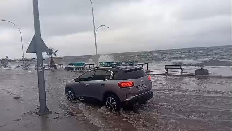 Bursa’nın Gemlik ilçesinde etkili olan fırtına ve yağış, yaşamı olumsuz etkiledi. Rüzgar ve yağışın etkisiyle yüksek dalgalar deniz ile karayı birleştirdi.