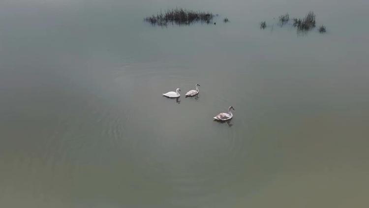‘Kuş cenneti’ olarak anılan gölün son misafirleri ise 3 kuğu oldu. Göç yolculukları sırasında Efteni Gölü'nde dinlenen kuğuların, göl sularında süzüldüğü görüldü. Gölde yüzen kuğular dronla da görüntülendi.