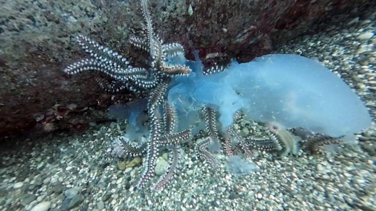 Yaptıkları dalışlarda denizanası örnekleri de alan Prof. Dr. Gökoğlu, inceleme yapıp denizanalarıyla ilgili rapor da hazırlıyor. Prof. Dr. Gökoğlu, yaptıkları bir dalışta özellikle Antalya'nın falez diplerinde yoğunlukla görülen deniz çıyanlarının denizanalarına saldırıp yediği anları görüntüledi.
