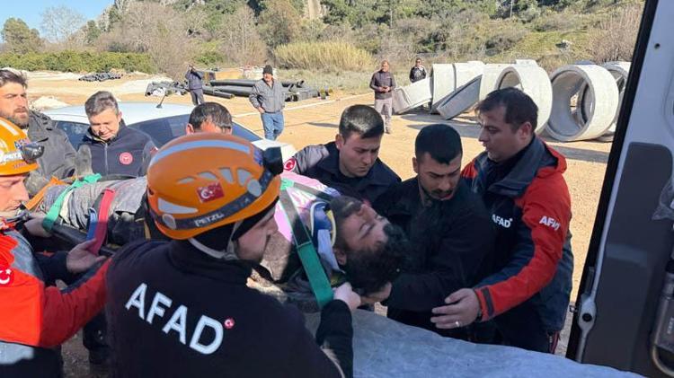 Ekipler, 2 saatlik çalışma sonunda bir bacağını toprak altından çıkardıkları Taşlı'yı bağlanan halatla kurtarıp, güvenli noktaya aldı. Daha sonra sedyeye alınan Eyüp Taşlı, ambulansla Akdeniz Üniversitesi Hastanesi'ne götürüldü. (DHA)