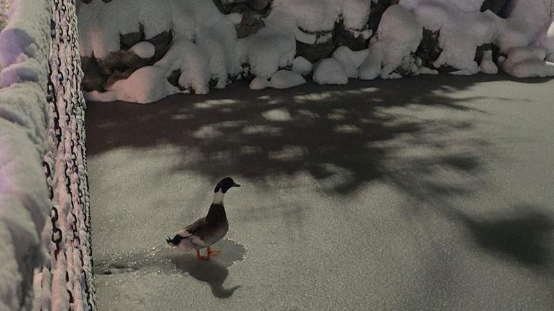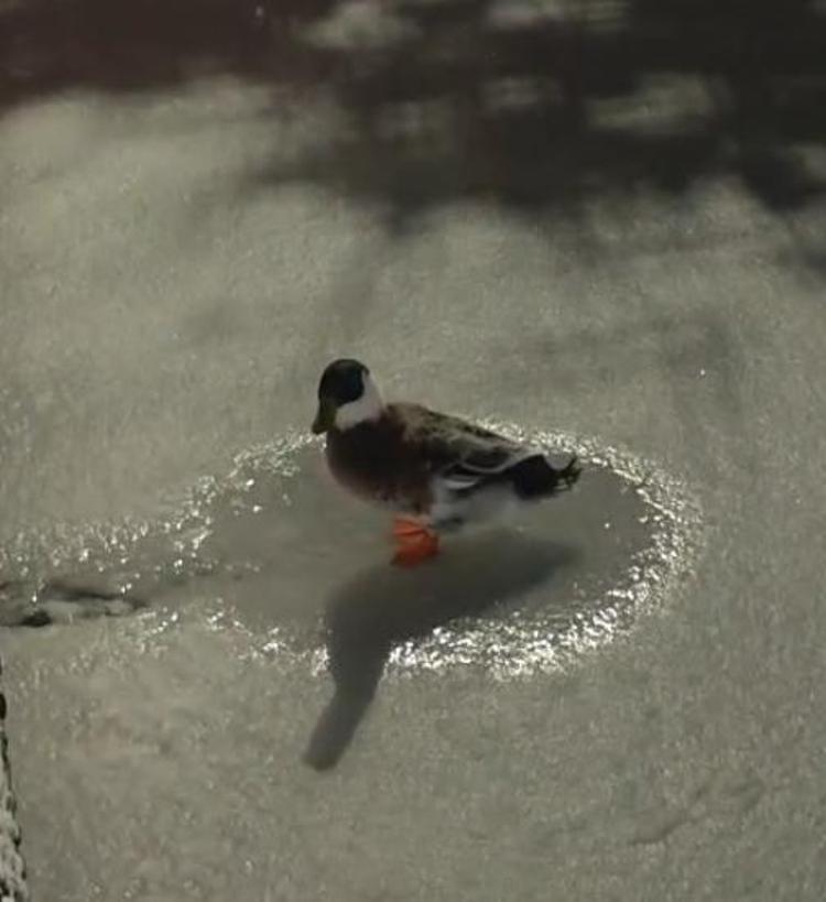 Göl dondu, ördekler yüzemeyince yürümeye başladı