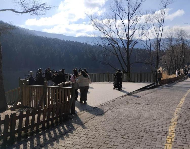 Güneşli havayı fırsat bilenler göl çevresinde yürüyüş yapıp, iskelede bol bol fotoğraf çekti. Bazı tatilciler de mangallarını yakarak piknik yaptı.