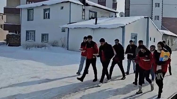 Hava sıcaklığının sıfırın altında 25 dereceye kadar düştüğü ilçede bir araya gelen öğrenciler, sokak sokak gezerek kedi ve köpekleri besledi. Öğrenciler ardından doğadaki yaban hayvanları için ormana yem bıraktı.