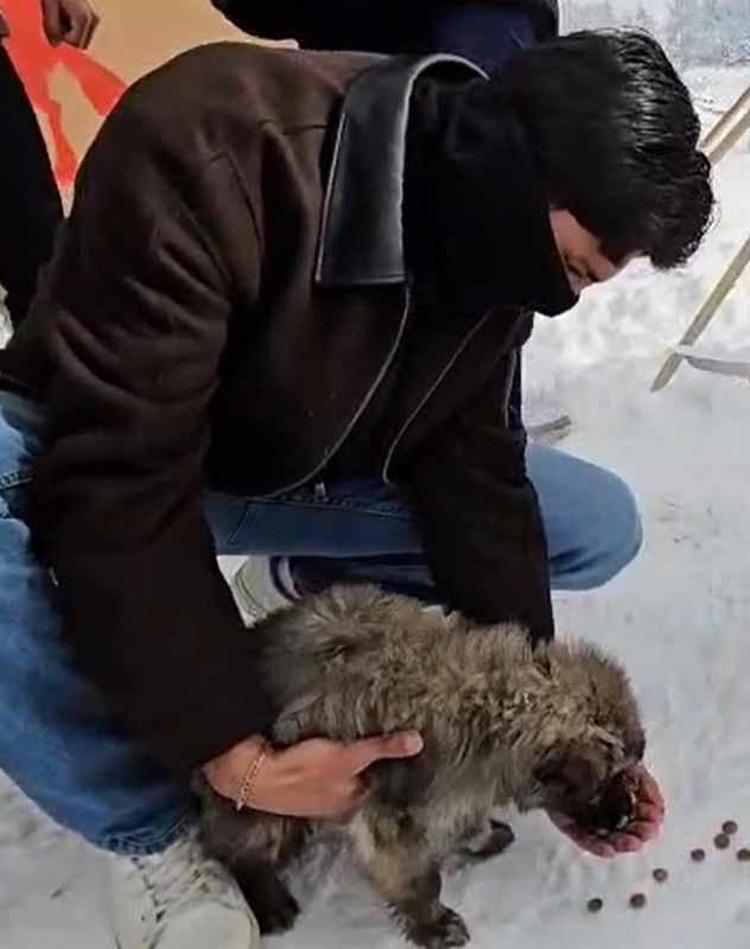 Ardahan’ın Göle ilçesinde üniversite öğrencileri, dondurucu soğuklara aldırış etmeden sokak ve yaban hayvanlarını elleriyle besledi.