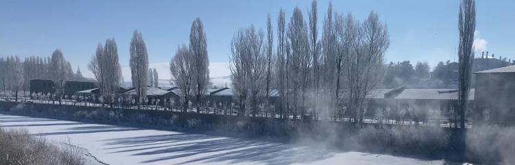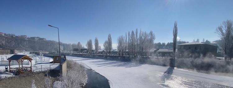 Ardahan'ın Göle ilçesinde dün gece sıcaklık, sıfırın altında 32,9 derece ölçüldü. İlçede dere ve nehirlerin yüzeyi buz tutarken, çatılarda da buz sarkıtları oluştu.