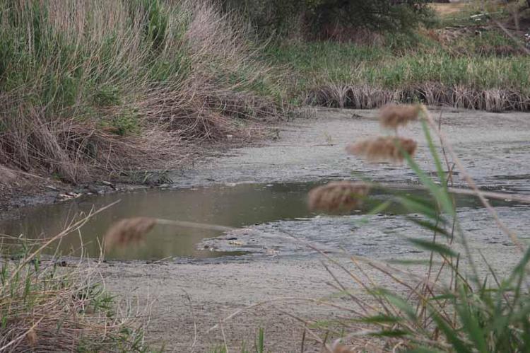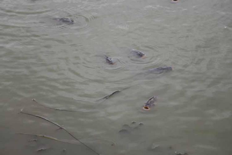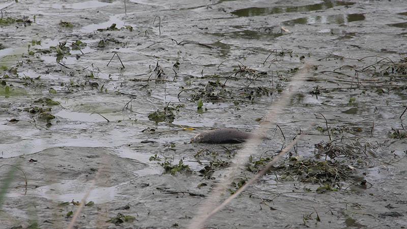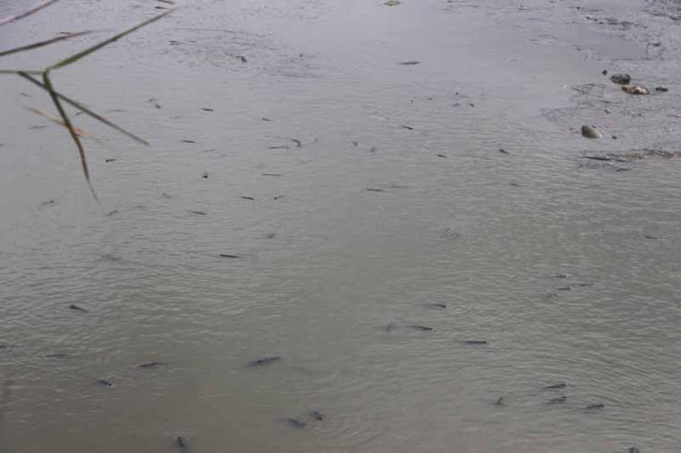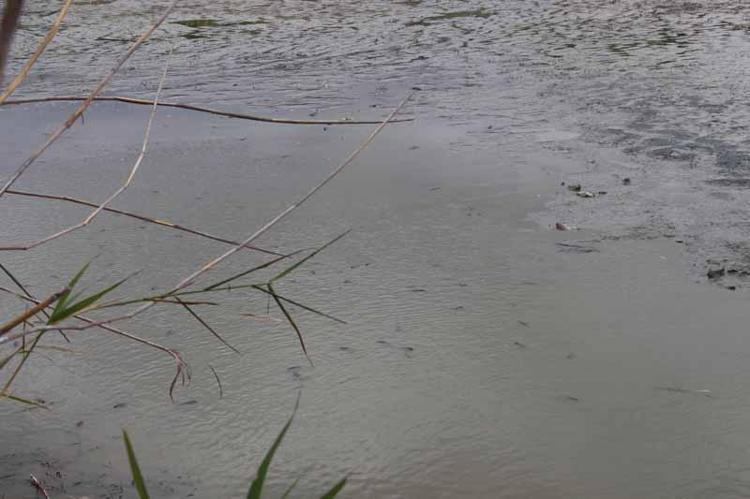 Gölet kurudu; kalan balıklar belli bir noktaya birikti