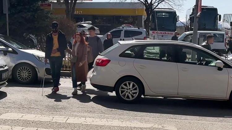 Görme engelli bastonuyla caddede sosyal deney yaptı; sürücüler üzdü, halkın duyarlılığı sevindirdi