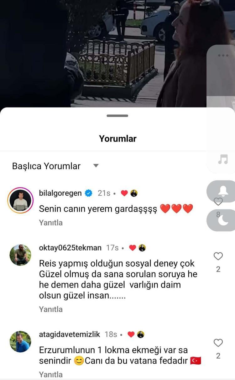 Oyuncunun paylaştığı görüntüye çok sayıda yorum yapıldı. Görme engelli şarkıcı Bilal Göregen de paylaşımın altına "Canın yerem gardaş" notunu düştü. Sosyal deneyiyle ilgili konuşan oyuncu Arif Arifoğulları, "Engelli vatandaşların günlük hayatta yaşadığı sıkıntıları dile getirmek adına Erzurum Terminal Caddesi'nde bir sosyal deney çalışması yaptık.