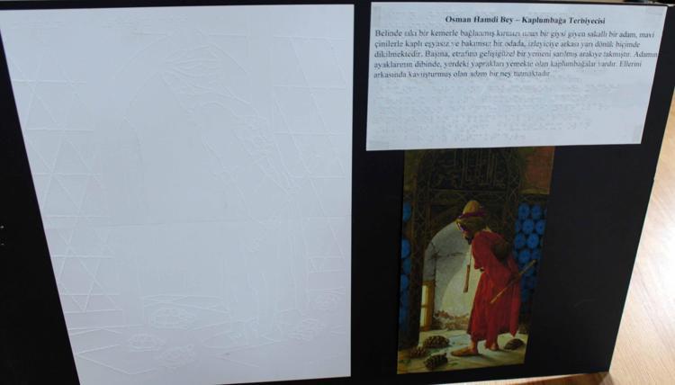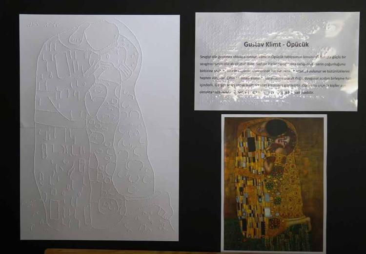 Bu resimlerin de sergilerini oluşturdum. Sergiler evrensel tasarım ilkesinde hiç görmeyen, dokunsal bireyler, gören bireyler ile az gören bireylere hitap edecek şekilde yine kabartma yöntemiyle şeffaf kağıda resmin metnini yazdım. Herkes kendi en iyi bilgi alma kanalına göre, görsel, işitsel, dokunsal bilgiyi alabiliyor. Burada birey tamamen kendi tecrübesiyle olmaya başlıyor. 40 yaşındaki görme engelli öğretmenimiz, 'İlk defa ben bir resme dokundum' dedi. Çünkü o zamana kadar sürekli birilerin betimlemesiyle anlatılmış, bizzat benim tecrübemle, ben tecrübe ediyorum diye mutlu oldular ve daha fazlasını istemeye başladılar. Biz de seve seve elimizdeki eser sayısını artırmaya çalışıyoruz" diye konuştu.