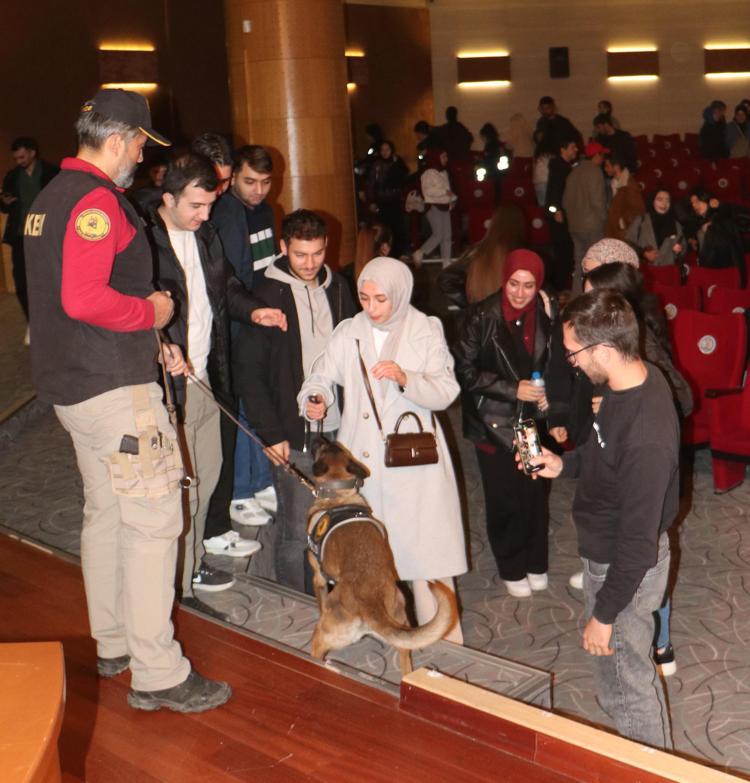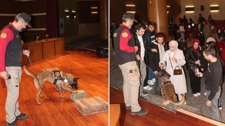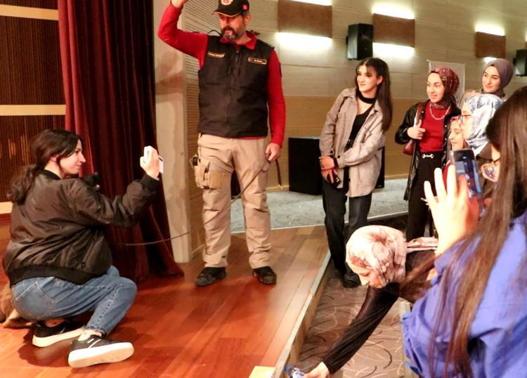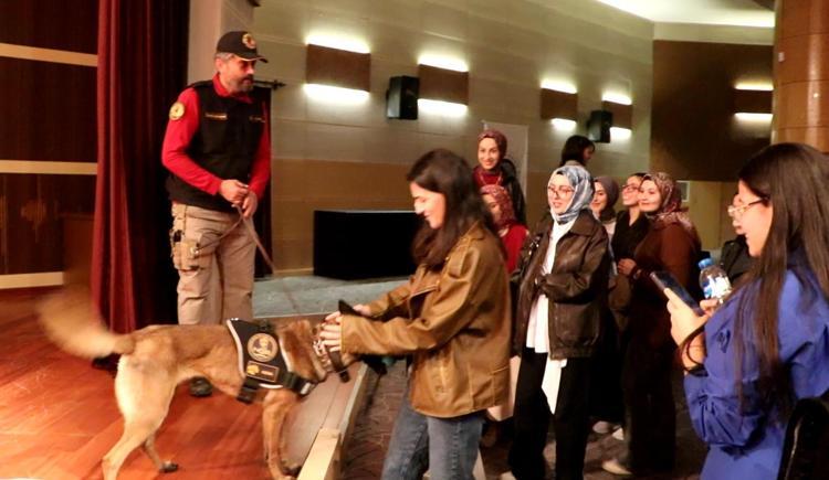 Erzurum Atatürk Üniversitesi'nde düzenlenen uyuşturucuyla mücadele konferansında saklanan uyuşturucuyu kısa sürede bulan narkotik köpeği Hera, öğrencilerin yoğun ilgisini gördü. Eğiticisiyle birlikte sahnede yaptığı gösteri sonrası öğrenciler, Hera ile fotoğraf çekilmek için sıraya girdi.