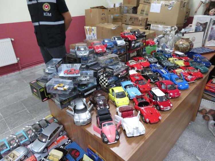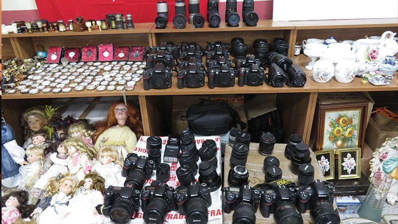 Yapılan aramalarda 46 adet fotoğraf makinesi lensi, 21 adet fotoğraf makinası, 11 adet fotoğraf makinası şarj aleti, fotoğraf makinası flaşı, 110 adet köstekli saat, 65 kol saati, 60 adet masa saati, 9 adet dürbün, 3 kilo bijuteri malzemesi, bin 612 adet plak, 28 adet olimpik hatıra parası, 84 adet porselen oyuncak bebek, 292 adet oyuncak model araba, 340 adet biblo, 44 adet süs eşyası, 105 kilo cam mutfak eşyası, bin 355 kilo porselen mutfak eşyası, 43 kilo plastik bahçe sulama malzemesi ele geçirildi.