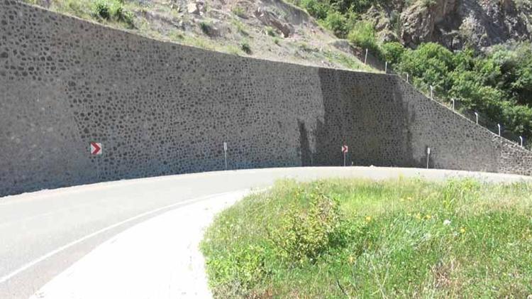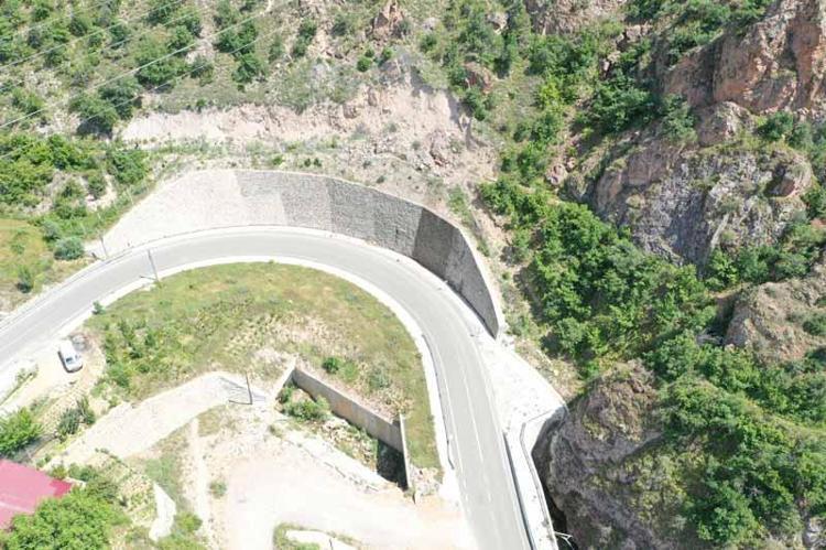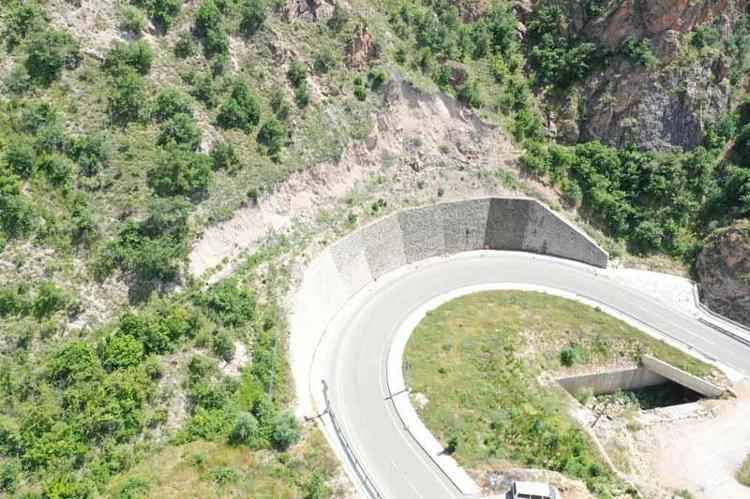 Gümüşhane'de 2018 yılında tamamlanan Çevre Yolu Projesi'nin Eskibağlar Mahallesi Yoncalık mevkisine ayrılan kavşağın üzerindeki yamaçlarda kaya düşmesine karşı çelik ağ ve istinat duvarıyla önlem alındı. Ancak yamaçtan kopan kayalar, ağı aşıp, su borusunu patlatarak yola düştü.